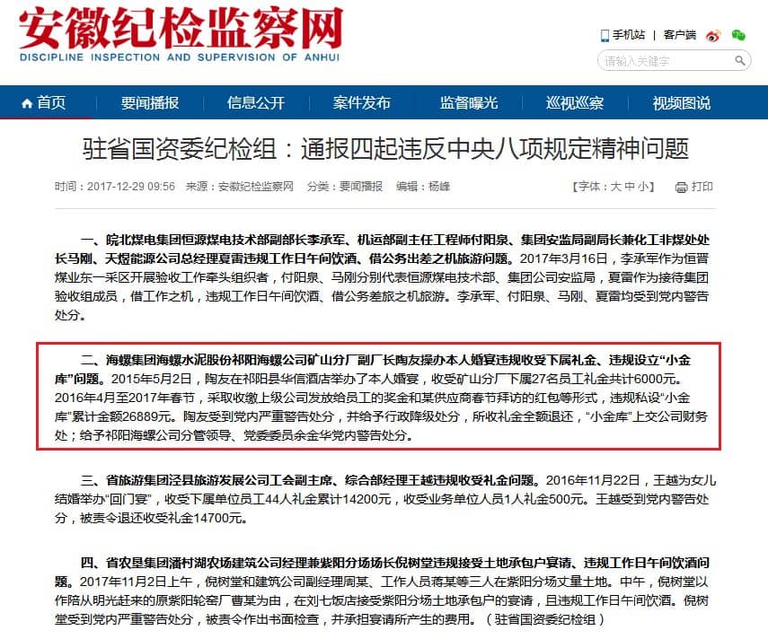 安徽紀檢監(jiān)察網(wǎng)通報原文