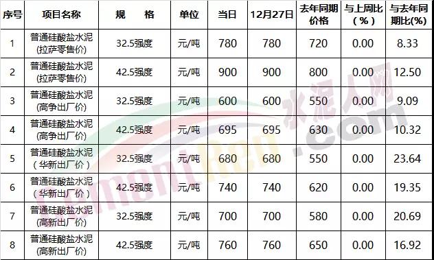 高爭建材、華新水泥、高新雪蓮等水泥生產(chǎn)企業(yè),針對全區(qū)重點項目執(zhí)行政府指導(dǎo)價,分別為普通硅酸鹽32.5(強(qiáng)度)500元、普通硅酸鹽42.5(強(qiáng)度)600元、普通硅酸鹽52.5(強(qiáng)度)800元,與上周持平。