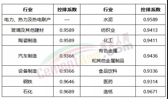 各行業(yè)控排系數(shù)
