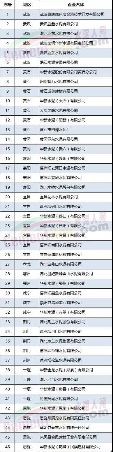 水泥企業(yè)清單
