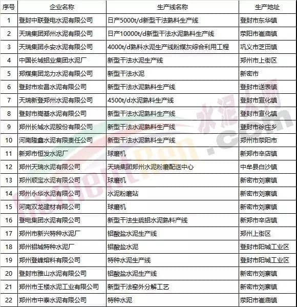 鄭州市水泥企業(yè)名單