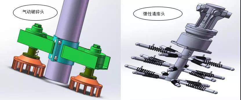 4、利用水泥清庫機(專利產品)對掛壁料進行清理,解除庫內危險。