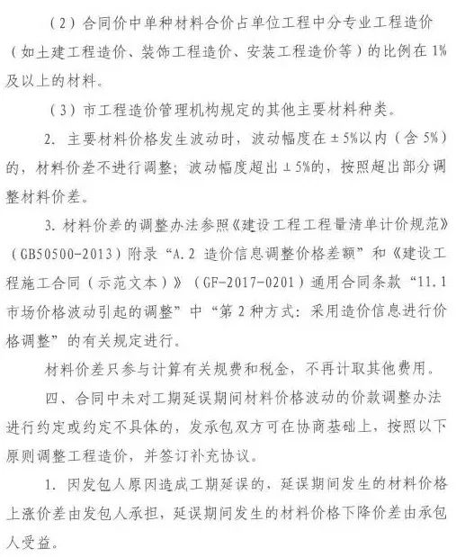 三、發(fā)承包雙方應(yīng)按照工程造價管理的相關(guān)規(guī)定,就材料價差調(diào)整等問題及時簽訂補充合同或協(xié)議。