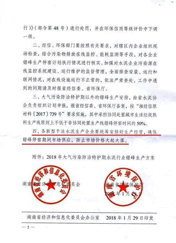 【水泥人網(wǎng)】日前,湖南省經(jīng)信委、環(huán)保廳聯(lián)合發(fā)布《關(guān)于加強(qiáng)大氣污染防治特護(hù)期水泥行業(yè)錯(cuò)峰生產(chǎn)和減排工作的通知》。通知稱根據(jù)省政府相關(guān)政策文件經(jīng)全省各新型干法熟料企業(yè)自愿申報(bào),湖南省水泥協(xié)會(huì)匯總制定了“2018年大氣污染防治特護(hù)期水泥行業(yè)錯(cuò)峰生產(chǎn)方案”。