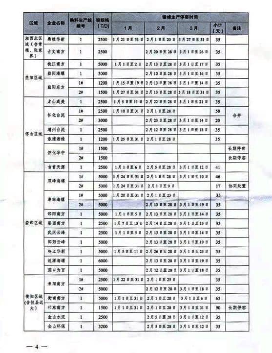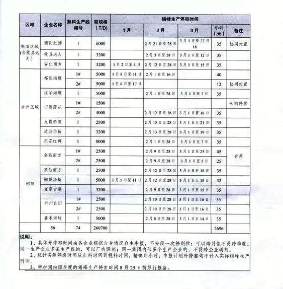 最近,湖南省水泥協(xié)會(huì)召開(kāi)水泥錯(cuò)峰生產(chǎn)專題常務(wù)理事會(huì)議,根據(jù)該方案對(duì)全省56家水泥熟料生產(chǎn)企業(yè)的74條生產(chǎn)線的錯(cuò)峰生產(chǎn),制定了詳細(xì)的時(shí)間表和分區(qū)域督查執(zhí)行措施。今年一季度,在全省水泥熟料生產(chǎn)線錯(cuò)峰生產(chǎn)中,企業(yè)平均停窯35天,有協(xié)同處理城市生活垃圾任務(wù)的企業(yè)減半執(zhí)行。全省74條水泥熟料生產(chǎn)線錯(cuò)峰生產(chǎn)總計(jì)停窯達(dá)2696天。