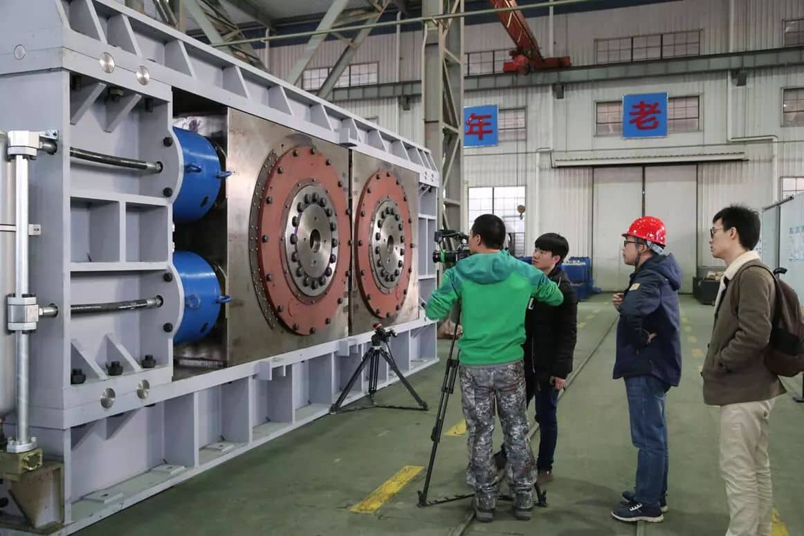 這臺我國擁有自主知識產(chǎn)權(quán)的輥壓機,直徑達2米,整機重量達438噸,各項經(jīng)濟技術(shù)指標達到了世界先進水平。像這樣超大規(guī)格的輥壓機解決了大型水泥生產(chǎn)線高效粉磨的難題,具有粉碎效率高、生產(chǎn)能力大、工藝系統(tǒng)簡捷、維護工作量小等特點,是目前國際公認粉碎效率最高的設(shè)備。輥壓機不僅應(yīng)用在水泥行業(yè),也廣泛應(yīng)用在冶金、礦山、有色金屬選礦及鋼渣深加工等領(lǐng)域。2017年1月,成功入選了國家工信部公布的第一批制造業(yè)單項冠軍示范企業(yè)名單。