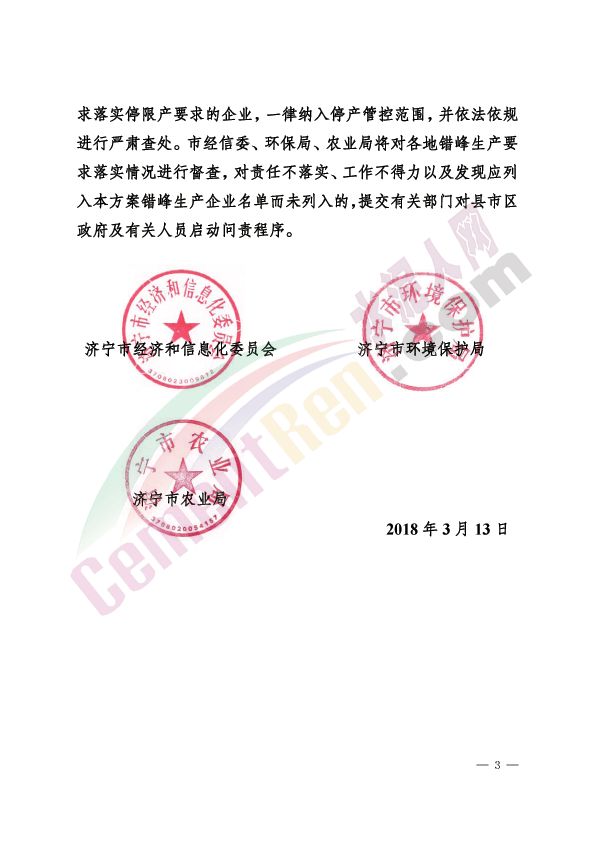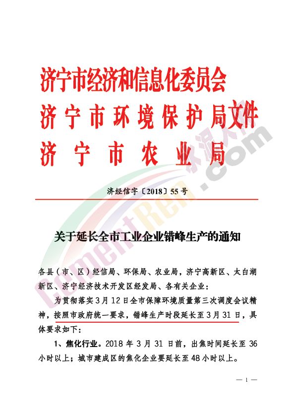 【水泥人網(wǎng)】昨日(13日)濟寧市經(jīng)信委、環(huán)保局、農(nóng)業(yè)局聯(lián)合發(fā)布《關于延長全市工業(yè)企業(yè)錯峰生產(chǎn)的通知》通知稱,為貫徹落實3月12日全市保障環(huán)境質(zhì)量第三次調(diào)度會議精神,按照市政府統(tǒng)一要求,錯峰生產(chǎn)時段延長至3月31日。