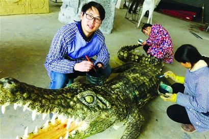 【水泥人網(wǎng)】水泥、鋼筋,甚至樹樁,經(jīng)“90后”小伙邢世杰“捏合”,變成了精美的景觀藝術(shù)。長(zhǎng)興水口鄉(xiāng)村旅游蓬勃發(fā)展,當(dāng)?shù)厣习偌肄r(nóng)家樂迫切希望提檔升級(jí),這讓畢業(yè)于南昌大學(xué)美術(shù)系的邢世杰嗅到商機(jī),在長(zhǎng)興縣大學(xué)生創(chuàng)業(yè)新政助推下,去年8月他創(chuàng)辦了湖州世杰景觀工程有限公司,為當(dāng)?shù)剞r(nóng)家樂、民宿“量身訂制”景觀雕塑。