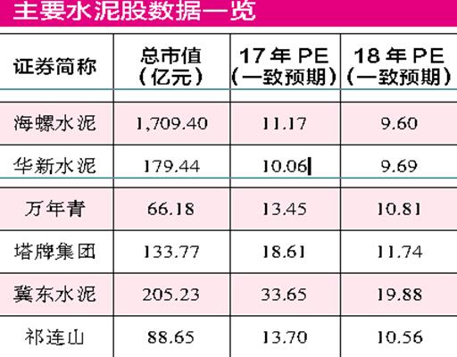 先看行業(yè)龍頭海螺水泥,這是一家?guī)缀跛腥潭紵嵬频陌遵R水泥股,過去半年基本每個月機構(gòu)給出的盈利預(yù)期都在上調(diào),目前市場對公司2017年歸母凈利潤的一致預(yù)期中值落在155.59億元,2018年則為177.12億元,對應(yīng)PE分別為11.1倍、9.6倍。作為全球最大的單一品牌水泥供應(yīng)商,公司依靠著名的“T型”戰(zhàn)略,成為了國內(nèi)成本最低的水泥制造企業(yè)。(所謂“T型”戰(zhàn)略,指的是借助長江水路和東部海岸線共同形成的水運航道,將安徽海螺的熟料資源與華東區(qū)域?qū)λ嘈枨笞钔⒌难亟?、沿海區(qū)域連接起來。)有別于傳統(tǒng)水泥企業(yè)熟料生產(chǎn)基地與粉磨站相結(jié)合的生產(chǎn)模式,海螺水泥在石灰石集中的區(qū)域設(shè)置熟料生產(chǎn)基地,利用水域運輸后至終端市場的粉磨站,從而突破了水泥原本運輸半徑小的局限,實現(xiàn)了華東地區(qū)大規(guī)模的產(chǎn)業(yè)擴張。憑借“T型”戰(zhàn)略和規(guī)模效應(yīng),海螺水泥多年來一直處于成本曲線的底端,以2016年數(shù)據(jù)為例,其完全成本較行業(yè)平均水平要低20-30元。
