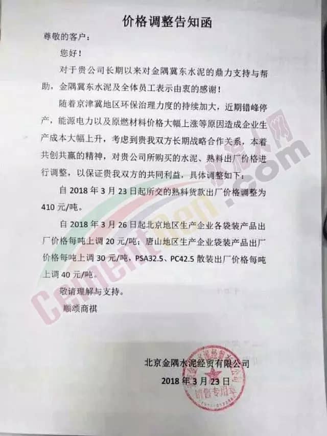 以山東山水水泥集團(tuán)有限公司、亞泰集團(tuán)、北方水泥有限公司、遼寧恒威水泥集團(tuán)、大連水泥集團(tuán)、撫順大伙房水泥有限公司,六家企業(yè)共同成立的云鼎水泥集團(tuán)也發(fā)布了漲價(jià)涵!