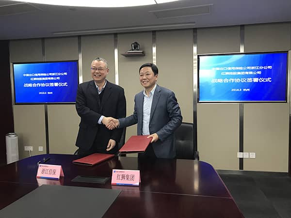 中國信保浙江分公司總經(jīng)理胡擁軍、紅獅集團(tuán)董事長章小華代表雙方簽約。中國信保浙江分公司副總經(jīng)理林晨及相關(guān)部門領(lǐng)導(dǎo)、紅獅集團(tuán)班子成員章旭喜等參加簽約儀式。