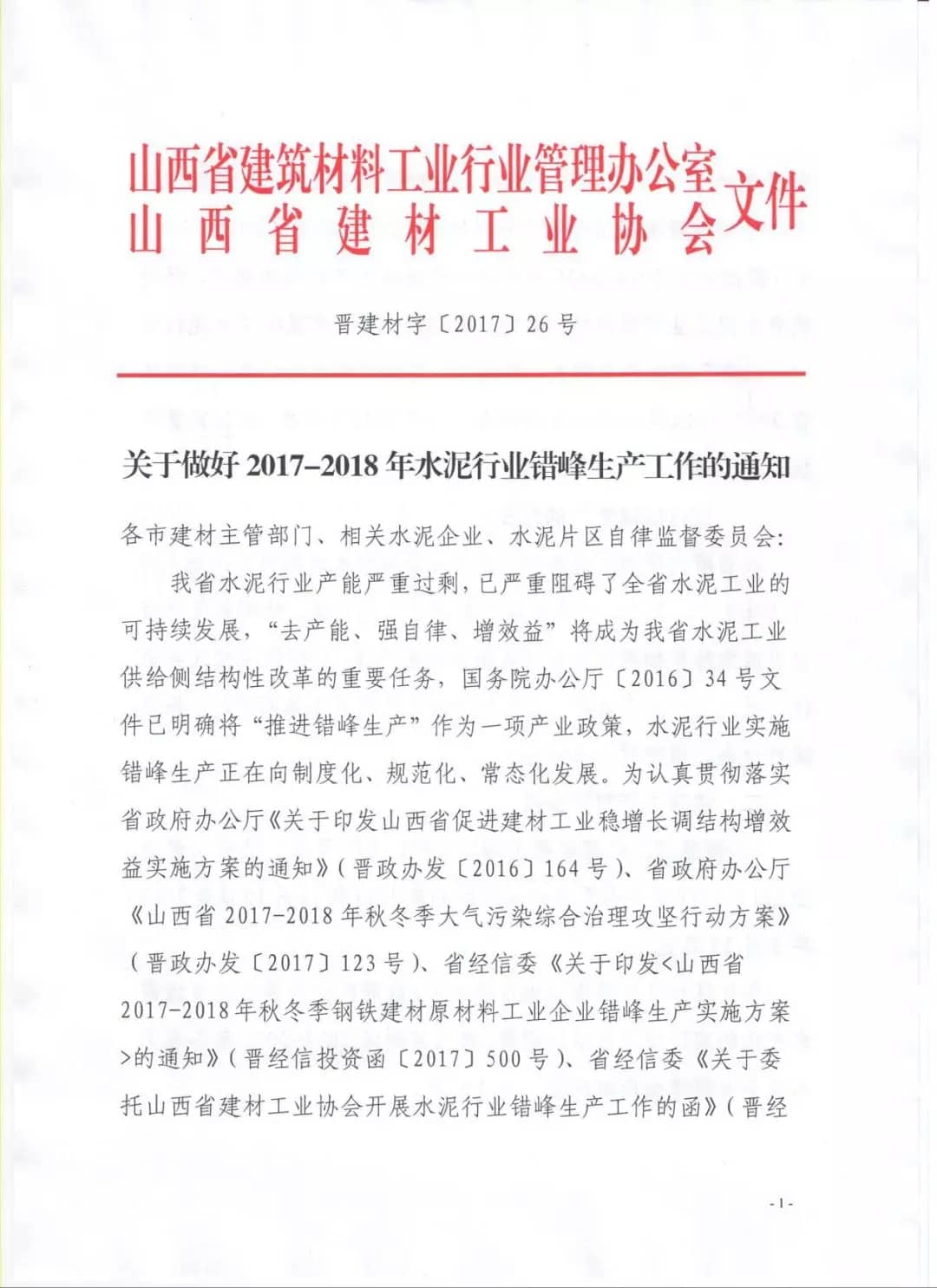 【水泥人網(wǎng)】據(jù)水泥人網(wǎng)了解,山西省根據(jù)產(chǎn)能過(guò)剩實(shí)際情況和水泥去產(chǎn)能工作目標(biāo)的要求,在2018年3月16日起到2018年年底期間全省水泥行業(yè)實(shí)施錯(cuò)峰生產(chǎn)停窯,停窯時(shí)間為: