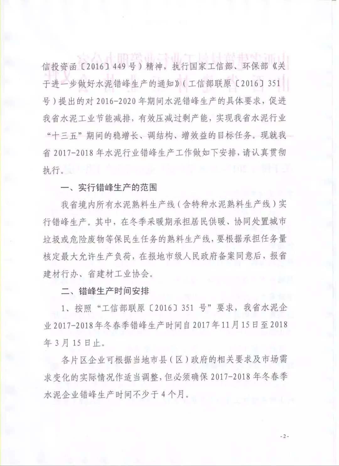 2018年11月起執(zhí)行山西省冬季錯(cuò)峰生產(chǎn)規(guī)定。