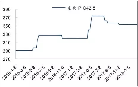 東北地區(qū)水泥價(jià)格高位穩(wěn)定(單位:元/ 噸)