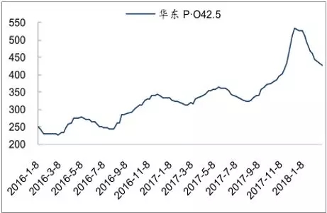 華東地區(qū)水泥價(jià)格季節(jié)性回落(單位:元/ 噸)