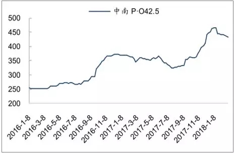 中南地區(qū)水泥價(jià)格小幅回落(單位:元/ 噸)