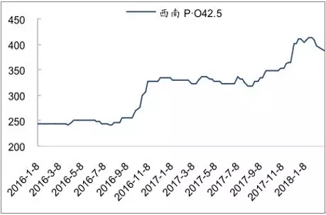 西南地區(qū)水泥價(jià)格小幅回落(單位:元/ 噸)
