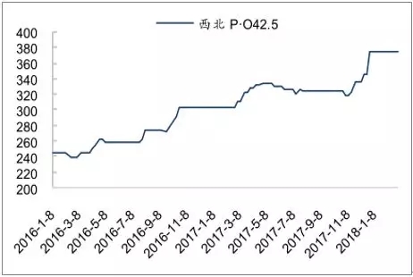西北地區(qū)水泥價(jià)格高位穩(wěn)定(單位:元/ 噸)