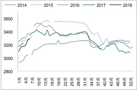 水泥價(jià)格出現(xiàn)季節(jié)性走弱(單位:元/噸)