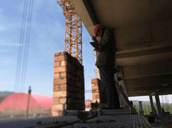 近日,記者在現(xiàn)場(chǎng)看到,幾棟在建廠房已拔地而起,工人們正在緊張的忙活著砌墻、刮膩?zhàn)拥裙ぷ?。工程總共要建?棟樓,包括廠房、暫存庫(kù)、辦公樓和宿舍樓,目前廠房、水泥窯處置主體工程和設(shè)備購(gòu)置已經(jīng)完成,正在進(jìn)行砌墻、粉刷等內(nèi)部裝飾裝修工作。