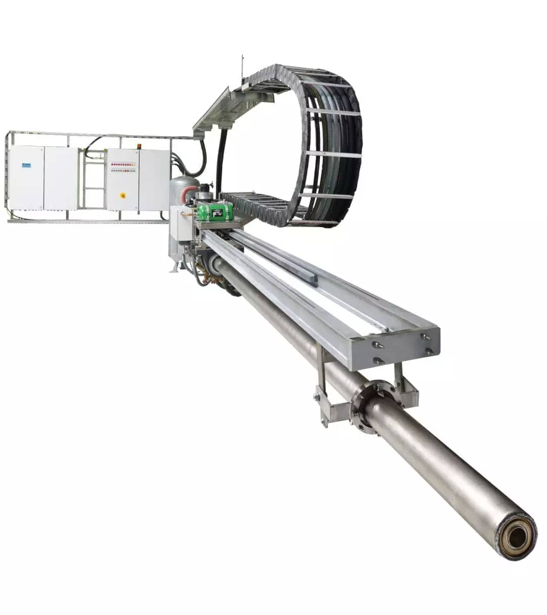 2. 通過旋轉(zhuǎn)探頭,保證探頭不因?yàn)殚L(zhǎng)期放在回轉(zhuǎn)窯內(nèi)而造成的溫度變形和重力變形,不會(huì)讓水泥凝固住探頭,而避免因?yàn)榫o急情況回縮不成功。