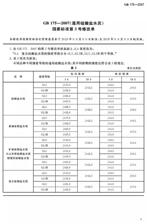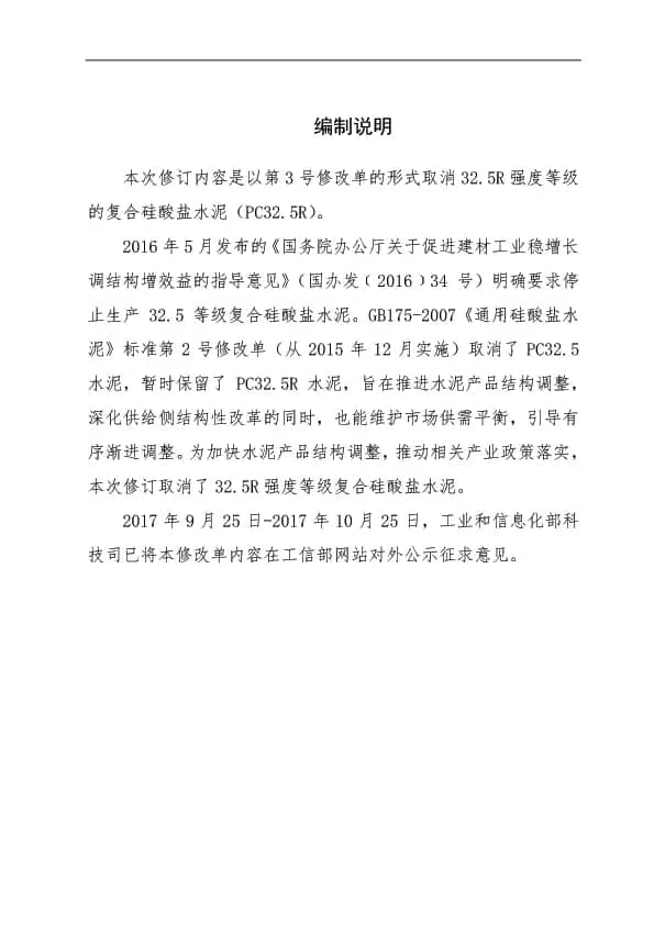一、《通用硅酸鹽水泥》強(qiáng)制性國家標(biāo)準(zhǔn)第3號修改單(報批稿)