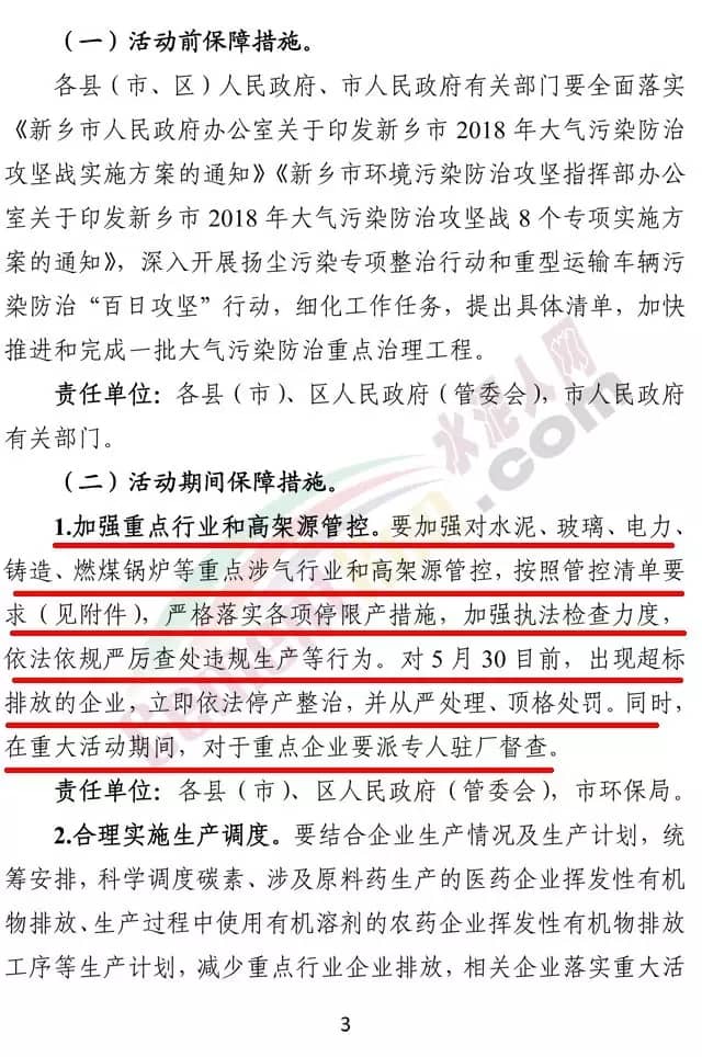 活動(dòng)期間保障措施十三條,其中針對(duì)于水泥行業(yè)提出按照管控清單要求,嚴(yán)格落實(shí)各項(xiàng)停限產(chǎn)措施,加強(qiáng)執(zhí)法檢查力度,依法依規(guī)嚴(yán)厲查處違規(guī)生產(chǎn)等行為。對(duì)5月30日前,出現(xiàn)超標(biāo)排放的企業(yè),立即依法停產(chǎn)整治,并從嚴(yán)處理、頂格處罰。同時(shí),在重大活動(dòng)期間,對(duì)于重點(diǎn)企業(yè)要派專人駐廠督查。
