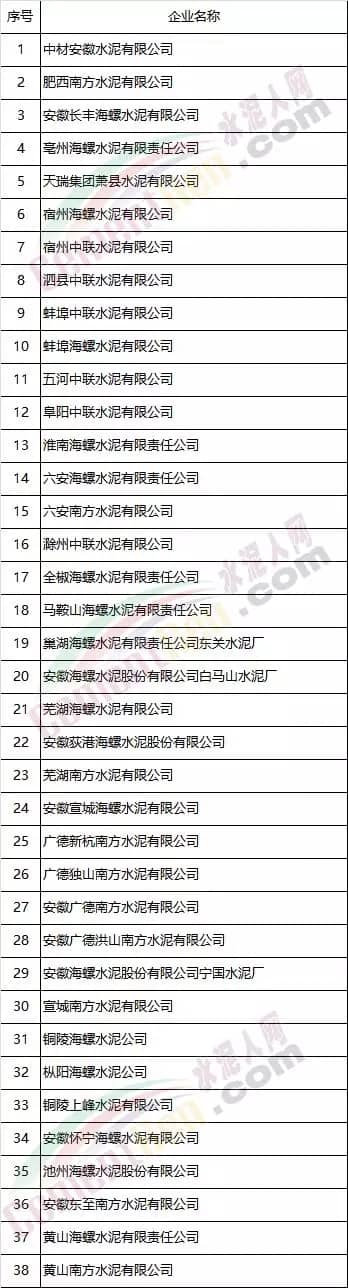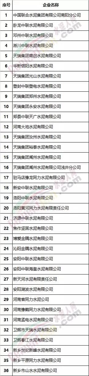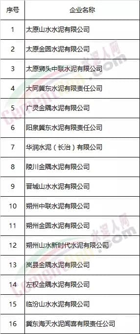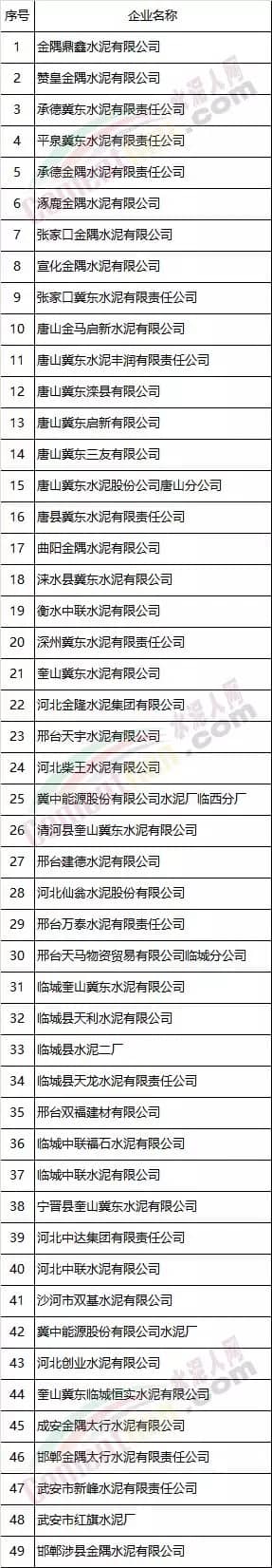 1 以上名單為京津冀、汾渭平原、長三角地區(qū)部分水泥企業(yè)名單,因篇幅有限未列入全部企業(yè),此名單僅供參考。