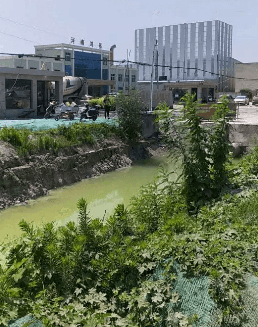 6月22日,本網(wǎng)一行來(lái)到了舉報(bào)中的“河南鴻基混凝土有限公司”門前看到確實(shí)如群眾反映,門口噴淋設(shè)施沖洗車輛后污水直接排入北邊不足2米的公路溝內(nèi),院內(nèi)污水通過(guò)北墻內(nèi)水溝同樣排入公路溝內(nèi),深3米左右溝內(nèi)北段已被水泥廢物填平,南段剛剛清理,黃色經(jīng)水泥浸泡過(guò)的污水清晰可見,院內(nèi)看到有生產(chǎn)車間窗戶、水泥罐頂部排放水泥粉塵后留下的痕跡。