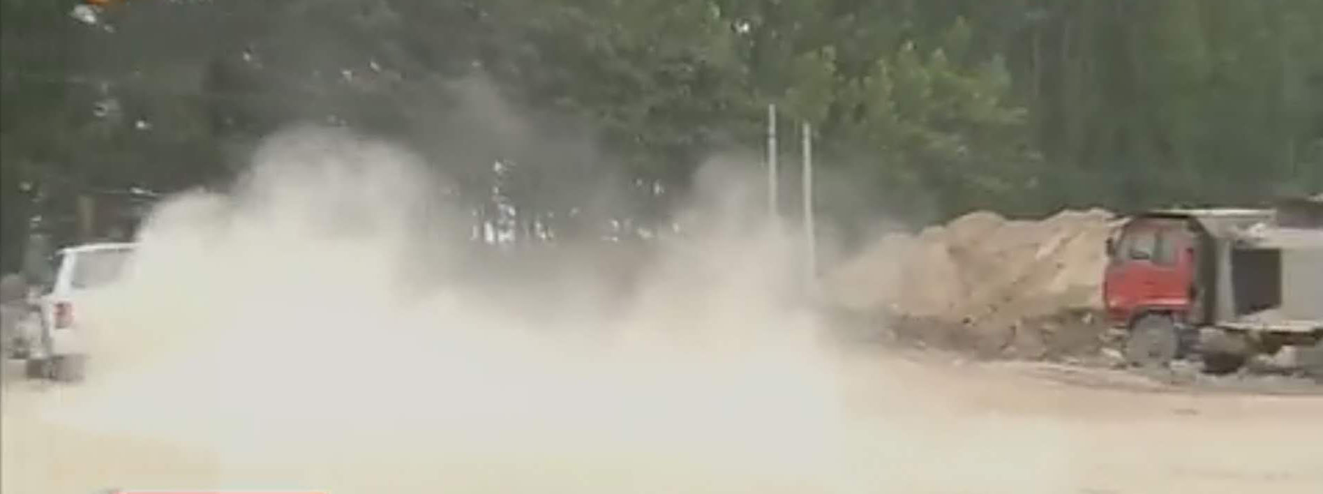 由于地面未經(jīng)硬化,積塵嚴(yán)重,僅僅一輛汽車駛過(guò),就掀起大量揚(yáng)塵,近距離內(nèi)讓人無(wú)法睜開(kāi)眼睛。而該碎石場(chǎng)距離村民住宅不足50米。