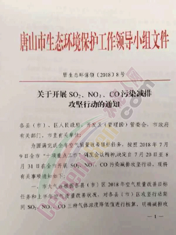 這是繼唐山市豐潤區(qū)人民政府發(fā)布《關(guān)于做好近期污染天氣過程應(yīng)對工作的緊急通知》,嚴格要求工業(yè)企業(yè)進行減排措施后,唐山市又一項嚴格的大氣治理文件。