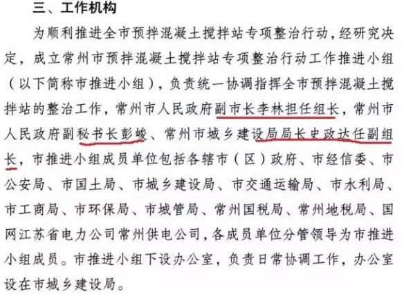 為順利推進全市預(yù)拌混凝土攪拌站專項整治行動,成立常州市預(yù)拌混凝土攪拌站專項整治行動工作推進小組,常州市人民政府副市長李林擔(dān)任組長。