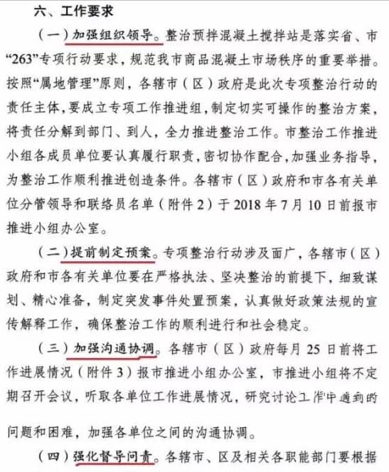 按照“全面排查、依法依規(guī)、限期到位”要求,從7月1日起,根據(jù)“屬地管理、政府主導(dǎo)、部門聯(lián)動”的原則,確保在今年12月底前,規(guī)范全市預(yù)拌混凝土攪拌站的生產(chǎn)經(jīng)營行為,取締一批不合法、不合規(guī)的預(yù)拌混凝土攪拌站。