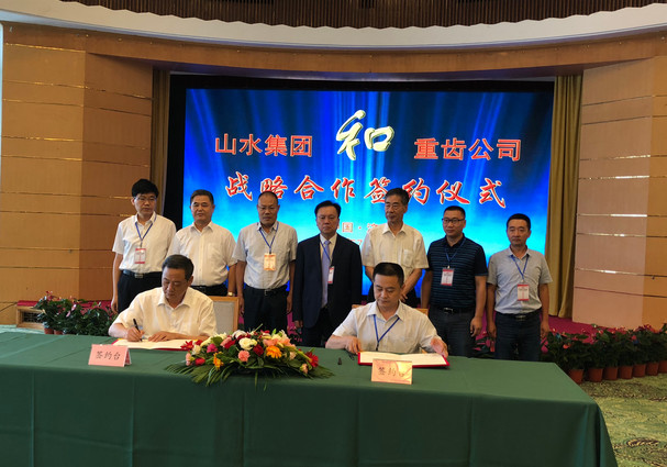 德國雷法集團、日本東洋鐵球、重慶齒輪箱、陜煤集團、萊鋼集團、中信重工機械、四平鼓風機、殼牌(中國)等11家來自國內(nèi)外的著名企業(yè),現(xiàn)場分別與山水集團簽署戰(zhàn)略合作協(xié)議。