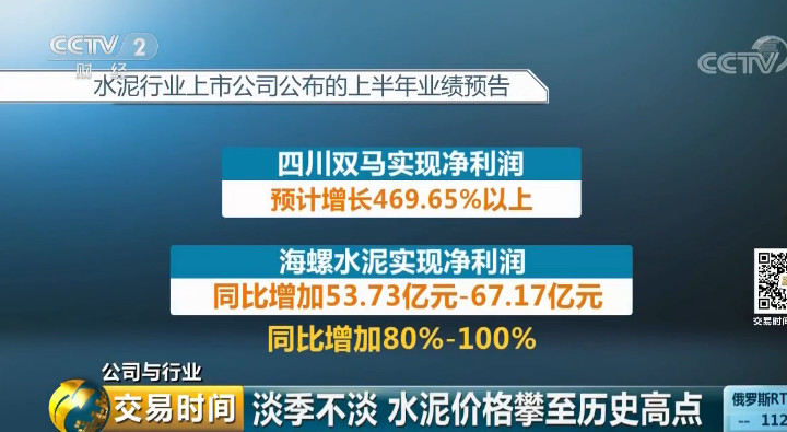 四川雙馬上半年實現(xiàn)凈利潤預(yù)計增長469.65%以上。海螺水泥上半年實現(xiàn)凈利同比增加53.73億元-67.17億元人民幣,同比增加80%-100%。