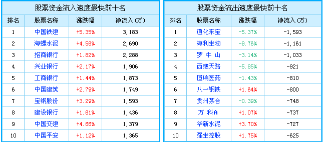 截至【9時(shí)55分】,股票五分鐘資金流速排名如下: