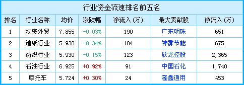 截至【10時(shí)27分】,行業(yè)五分鐘資金流速排名如下: