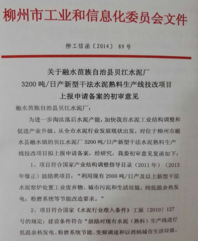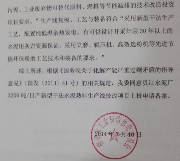 2、請(qǐng)求水泥生產(chǎn)許可證審查部,依法依規(guī)不再受理貝江水泥有限公司的生產(chǎn)許可證申報(bào)資料。