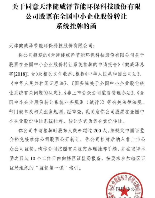 【水泥人網(wǎng)】據(jù)全國(guó)中小企業(yè)股份轉(zhuǎn)讓系統(tǒng)相關(guān)消息顯示,國(guó)內(nèi)余電發(fā)熱工程領(lǐng)域的技術(shù)服務(wù)及改造領(lǐng)域的引領(lǐng)者,天津健威澤節(jié)能環(huán)保科技股份有限公司(以下簡(jiǎn)稱“天津健威澤”)已于2018年7月31日起成功在新三板掛牌,這是天津健威澤的里程碑。在今后的發(fā)展過程中,天津健威澤將會(huì)加大在技術(shù)研發(fā),用戶服務(wù)、社會(huì)責(zé)任方面的投入,切實(shí)回報(bào)用戶、回報(bào)各大股東,實(shí)現(xiàn)企業(yè)利益最大化。