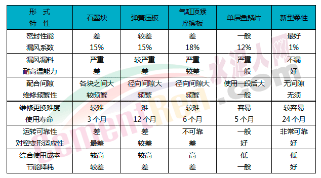 實踐證明雙柔性式密封與氣缸式、魚鱗片式、彈簧壓板式相比,密封效果截然不同,使用雙柔性式密封窯尾煙室負壓較改造前有明顯提高(約200pa左右),煙室溫度提高200℃。