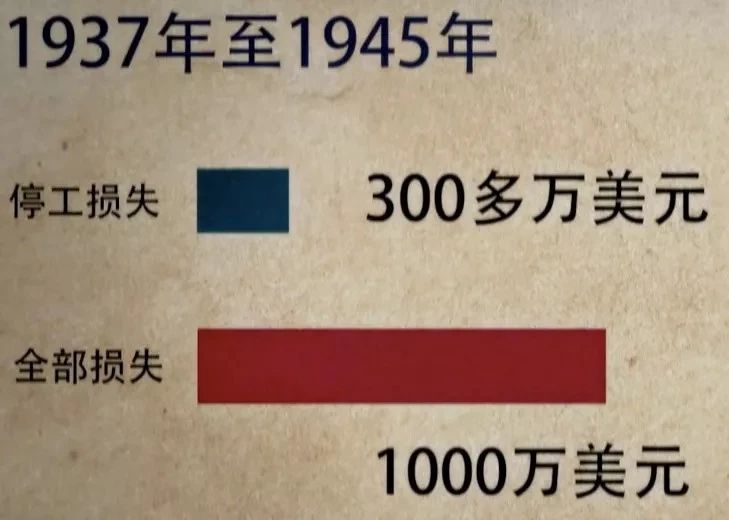據(jù)戰(zhàn)后1946年的數(shù)據(jù)統(tǒng)計(jì),從1937年至1945年,僅工廠停工這一項(xiàng),損失就高達(dá)300多萬美元。