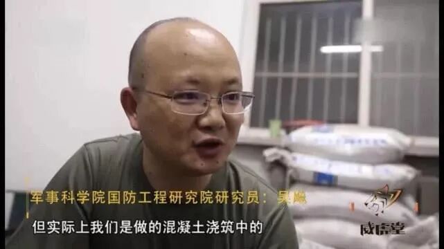 吳飚(軍事科學院國防工程研究院研究員):遮彈層就是給工程穿防彈衣,必須要有高強度的水泥,才能配配制成功,當時知道國內有這種水泥。