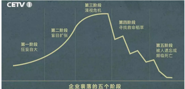 對于公司的衰敗,他講有五個階段: