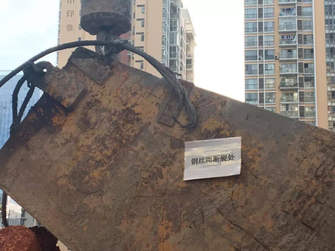 經(jīng)現(xiàn)場勘查,掛吊鉤的鋼絲繩斷裂