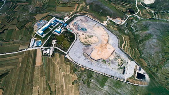 這是8月21日拍攝的河北省武安市垃圾填埋場及河北省武安市新清成再生資源利用有限公司的預(yù)處理車間
