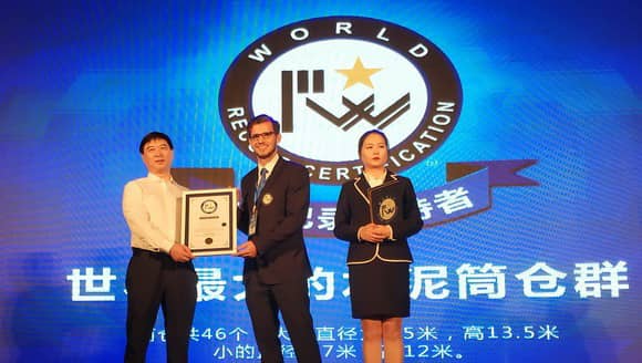 在活動(dòng)現(xiàn)場(chǎng),世界紀(jì)錄認(rèn)證官亞歷山大公布了位于北京塞隆國(guó)際文化創(chuàng)意園的46座水泥筒倉(cāng)群建筑被世界紀(jì)錄認(rèn)證機(jī)構(gòu)認(rèn)定為“世界最大的水泥筒倉(cāng)群”,并頒發(fā)證書。現(xiàn)場(chǎng)大屏幕播放了紀(jì)錄片,顯示了46座水泥筒倉(cāng)群經(jīng)過(guò)前期申請(qǐng)、現(xiàn)場(chǎng)測(cè)量、數(shù)據(jù)確認(rèn)等認(rèn)證流程。