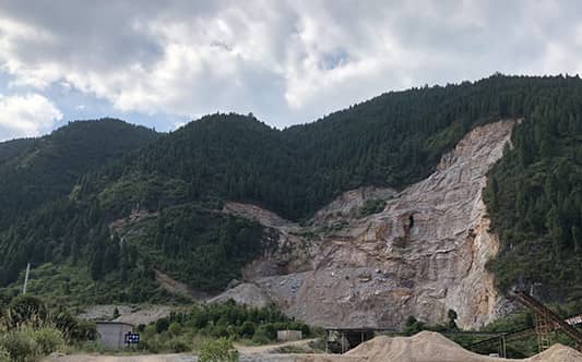 鼎洪砂石廠,山體裸露未掛網(wǎng)覆蓋。