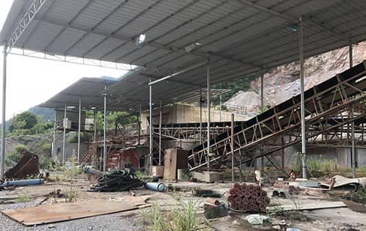 砂石廠設(shè)備未拆除,現(xiàn)場荒草叢生,十分凌亂。