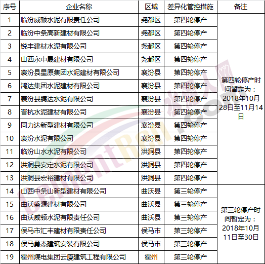 河北省邯鄲市《2018-2019年重點(diǎn)行業(yè)采暖季差異化錯峰生產(chǎn)方案》征求意見稿公示版發(fā)布,其中針對水泥行業(yè)錯峰生產(chǎn)政策措施有重大調(diào)整。