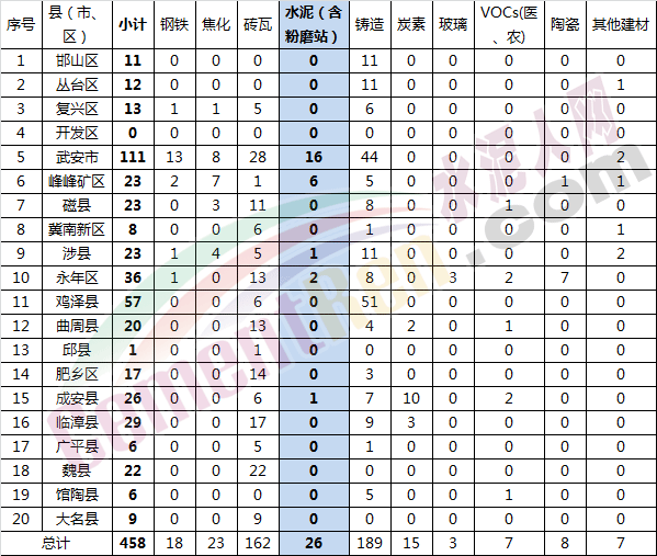 注:各縣(市、區(qū))進(jìn)一步核實(shí)本區(qū)域10個重點(diǎn)行業(yè)錯峰生產(chǎn)企業(yè)底數(shù),未上報(bào)按漏報(bào)計(jì),采暖季一律停產(chǎn)。